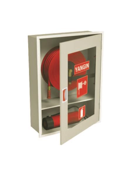1" yarı sert kauçuk hortumlarının uç kısımlarında jet nozul lans mevcuttur. Sıva üstü - sıva altı, tüplü - tüpsüz, dik - yatay, cam kapaklı - saç kapaklı vb. gibi bir çok seçeneği bulunan iç mekan tipi yangın dolaplarımız TS EN 671 - 1'ye uygun olup CE belgelidir.